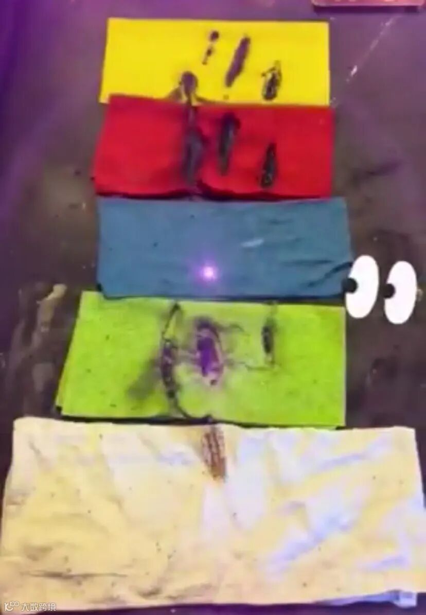 流传于社交媒体上的一则短视频显示,当激光穿过黄色、蓝色、橙色的织物时,只有蓝色织物毫发无损。
