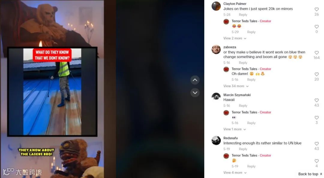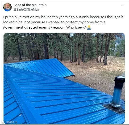 这些有关“蓝色屋顶防激光”的阴谋论视频,播放量动辄在数万乃至数十万以上,一个对这些传言深信不疑的美国网民称,自己已经将自家屋顶刷成了蓝色。