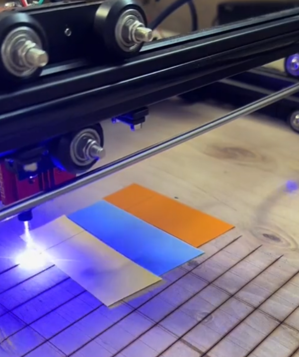 Social media posts sharing the post typically include a video from a TikTok account that often shares clips of everyday items being burned by a handheld industrial laser in a workshop. The clip shows the laser burning yellow, and orange fabric, while a blue swatch is unscathed.