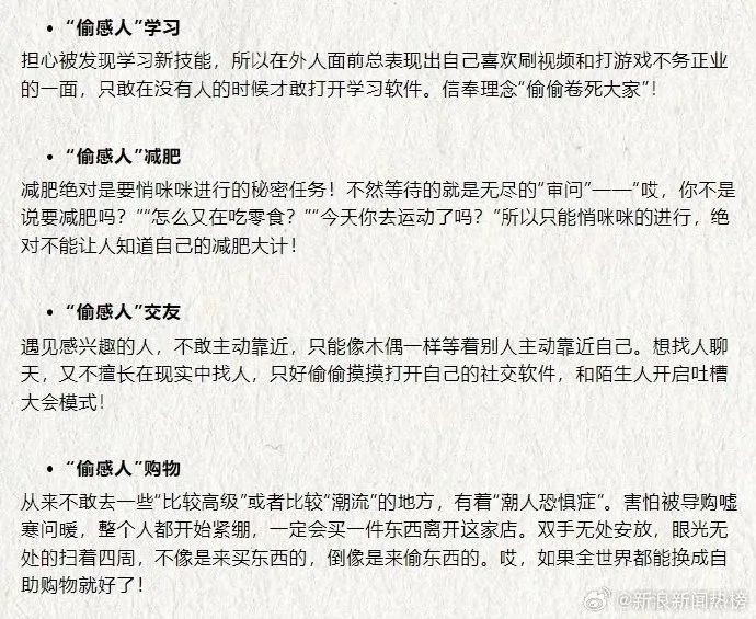 “突然发现自己偷感很重” “超绝偷感”“i人记录生活时偷感很重”“偷感行为大赏”……