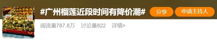 据央视新闻报道,目前全国各地的榴莲零售价格相较于上市初期,普遍下降了超过三成。