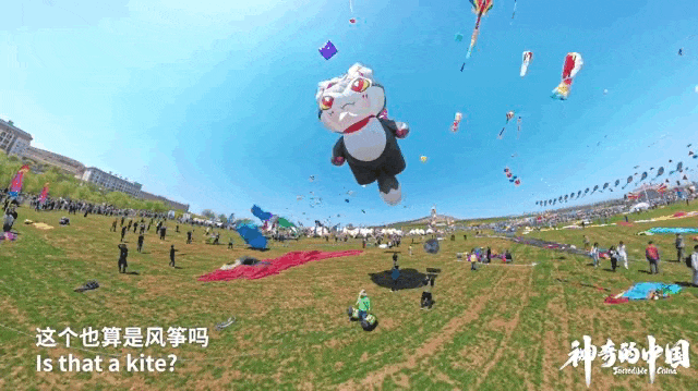 现场还有各种独特的创意风筝、生动的动漫形象风筝,以及展现不同国家特色和文化的精彩作品。在春风的轻抚下,万千彩鸢在蔚蓝的天空中交相辉映,点缀出一片梦幻般的风筝海洋。