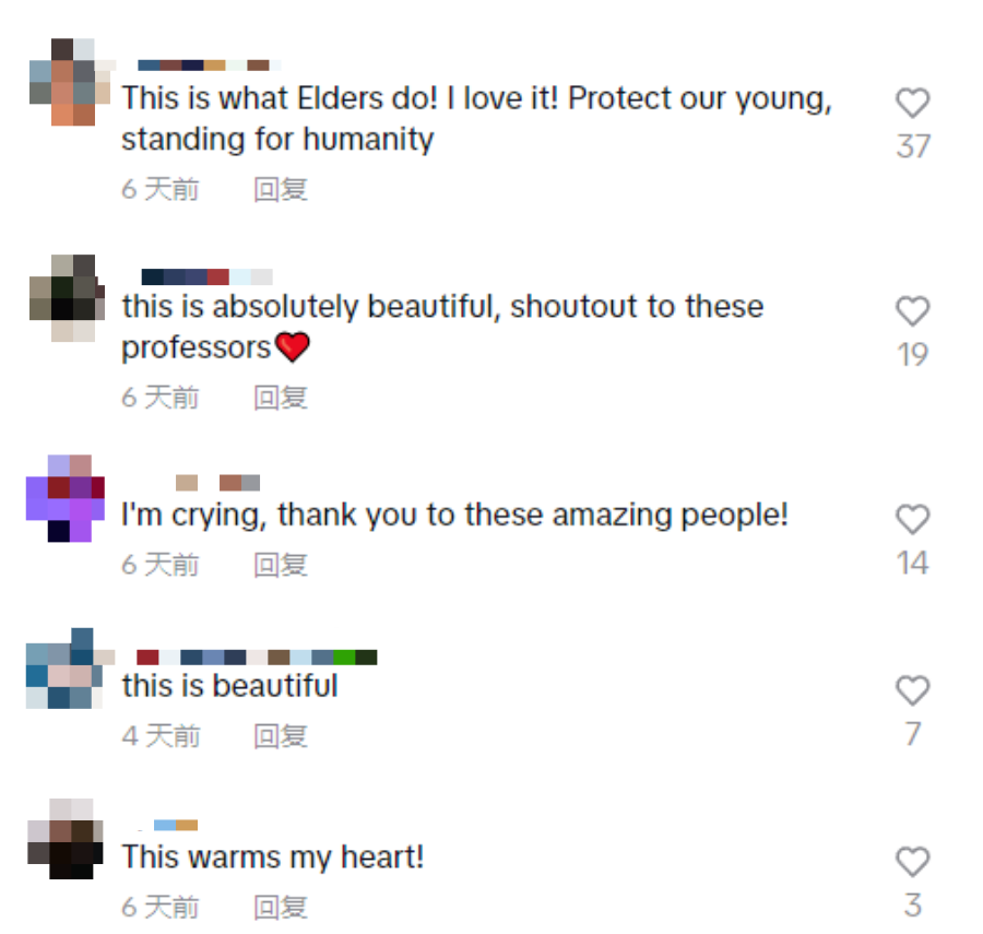 在海外社交媒体上,海外网友纷纷留言表示支持,有网友表示:这就是身为长辈该做的!保护年轻人,为人性而站出来。