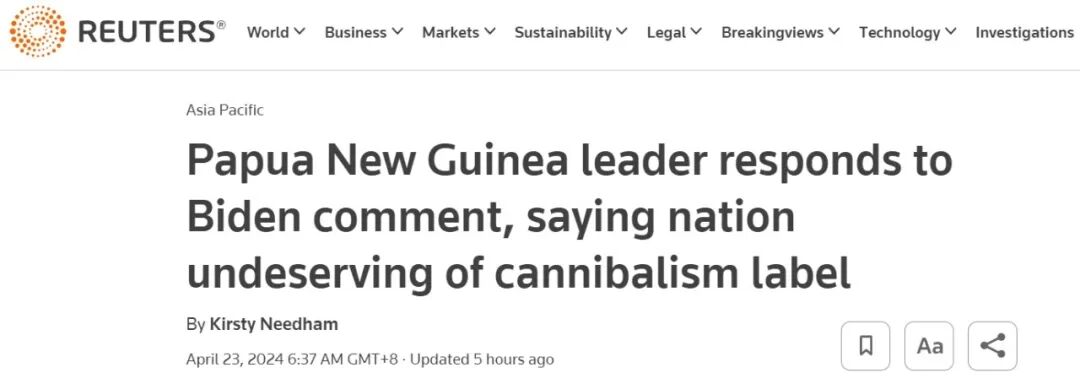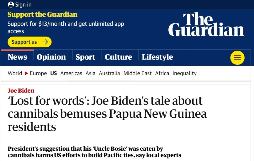 Biden had "appeared to imply his uncle was eaten by cannibals after his plane was shot down over PNG during WWII", Marape's office said in a statement late on Sunday.