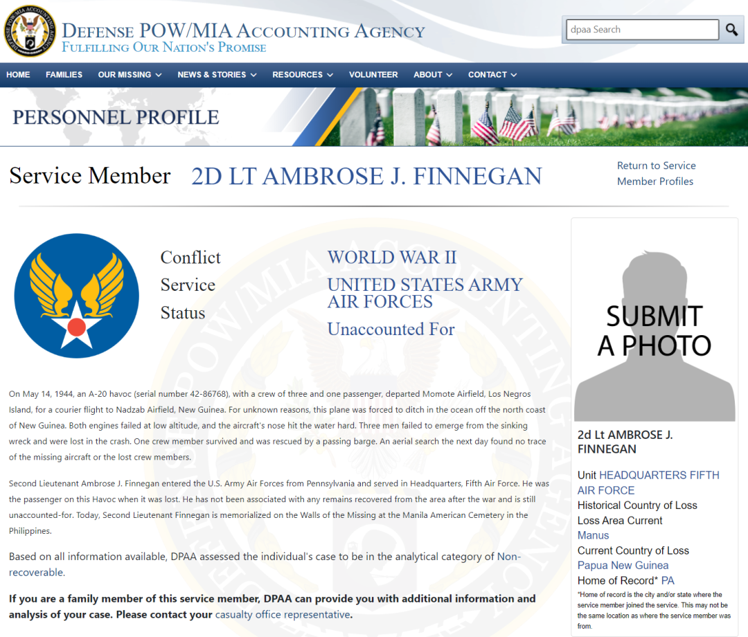 In his statement, Marape urged the White House "to look into cleaning up these remains of WWII so the truth about missing servicemen like Ambrose Finnegan can be put to rest."