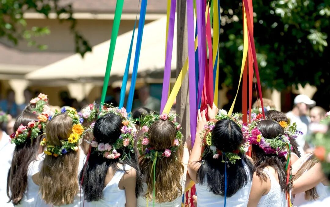 May Day这天,人们还会在空旷的地方竖起一根高大的木杆,叫做 Maypole,大家团团围着跳舞,祈求人畜兴旺。