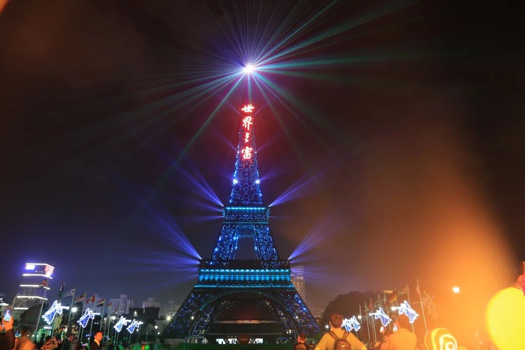 夜晚在铁塔的灯光秀下变得迷人