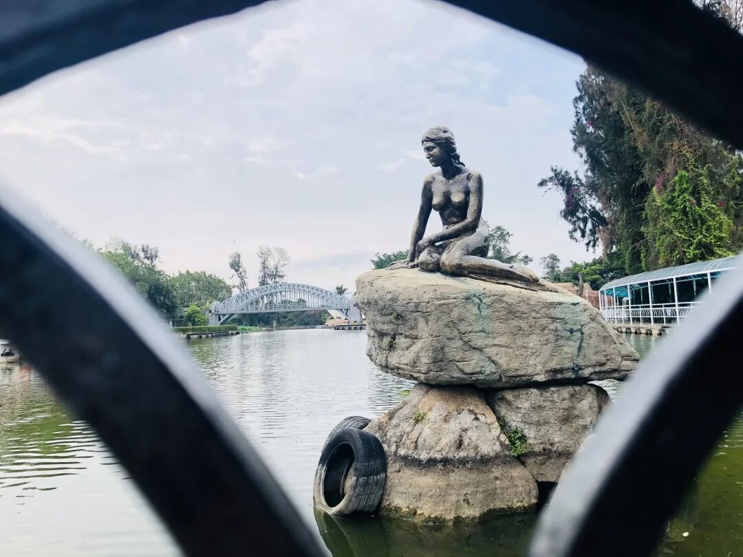 人鱼公主安静的坐在湖面的石头上