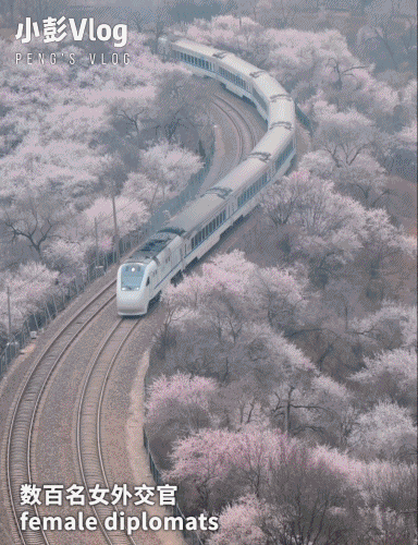4月14日,外交部与北京市政府联合举办专场活动,邀请来自全球的数百名女外交官和外国媒体在华女记者,乘坐“开往春天的列车”前往延庆,开启一场融合自然与人文的北京春天之旅。