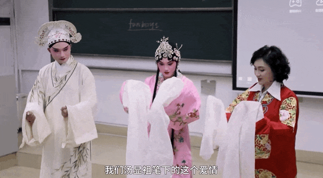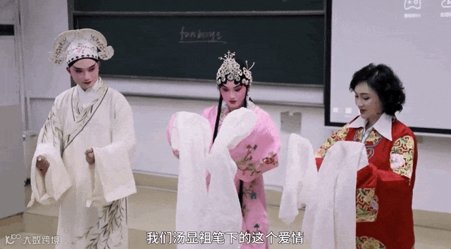 今年,陈俐将授课形式变为线上网课+线下鉴赏,并且尝试在课堂上表演戏曲动作。没想到第一堂课就吸引了许多学生,能容纳200人的大教室从此几乎爆满。