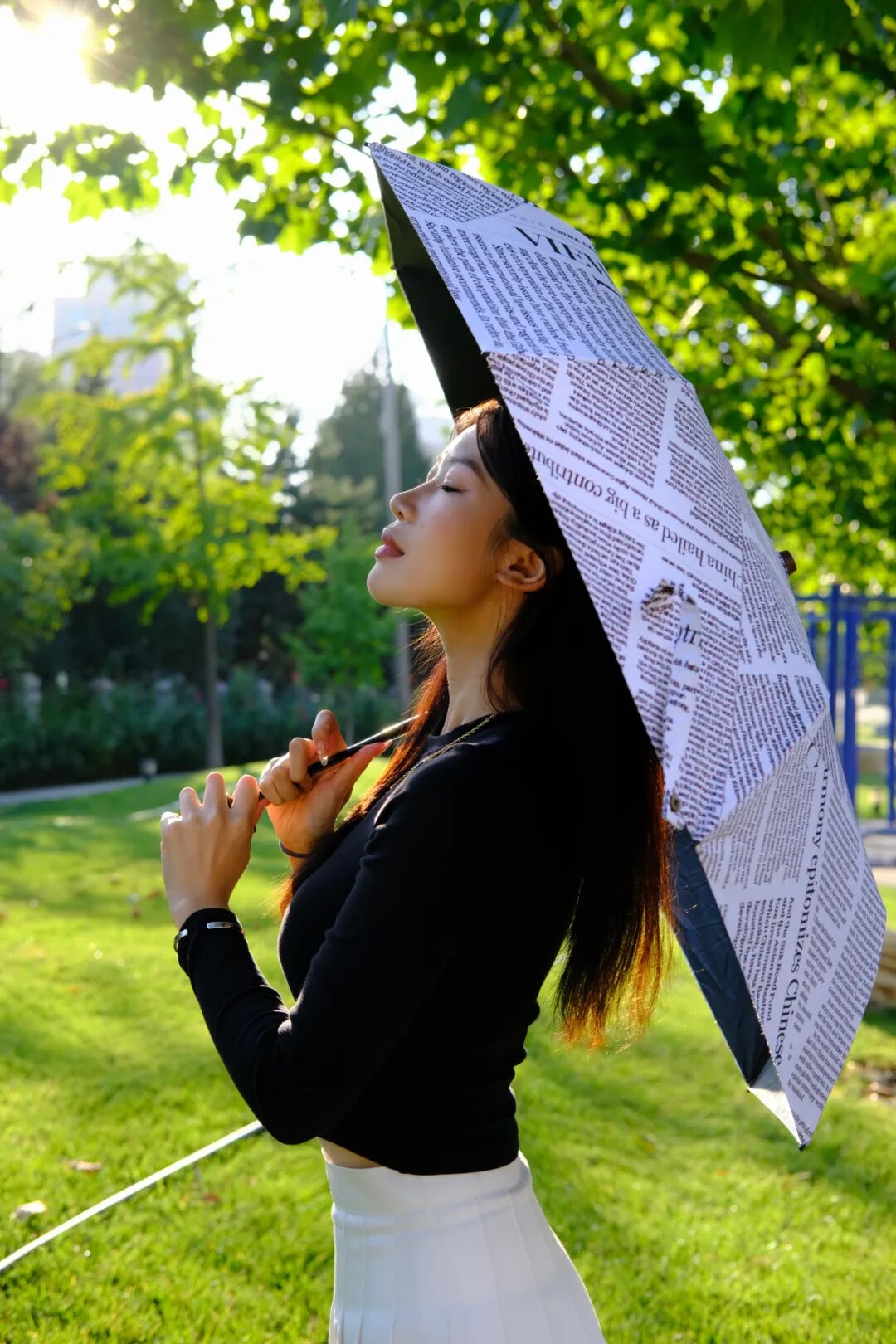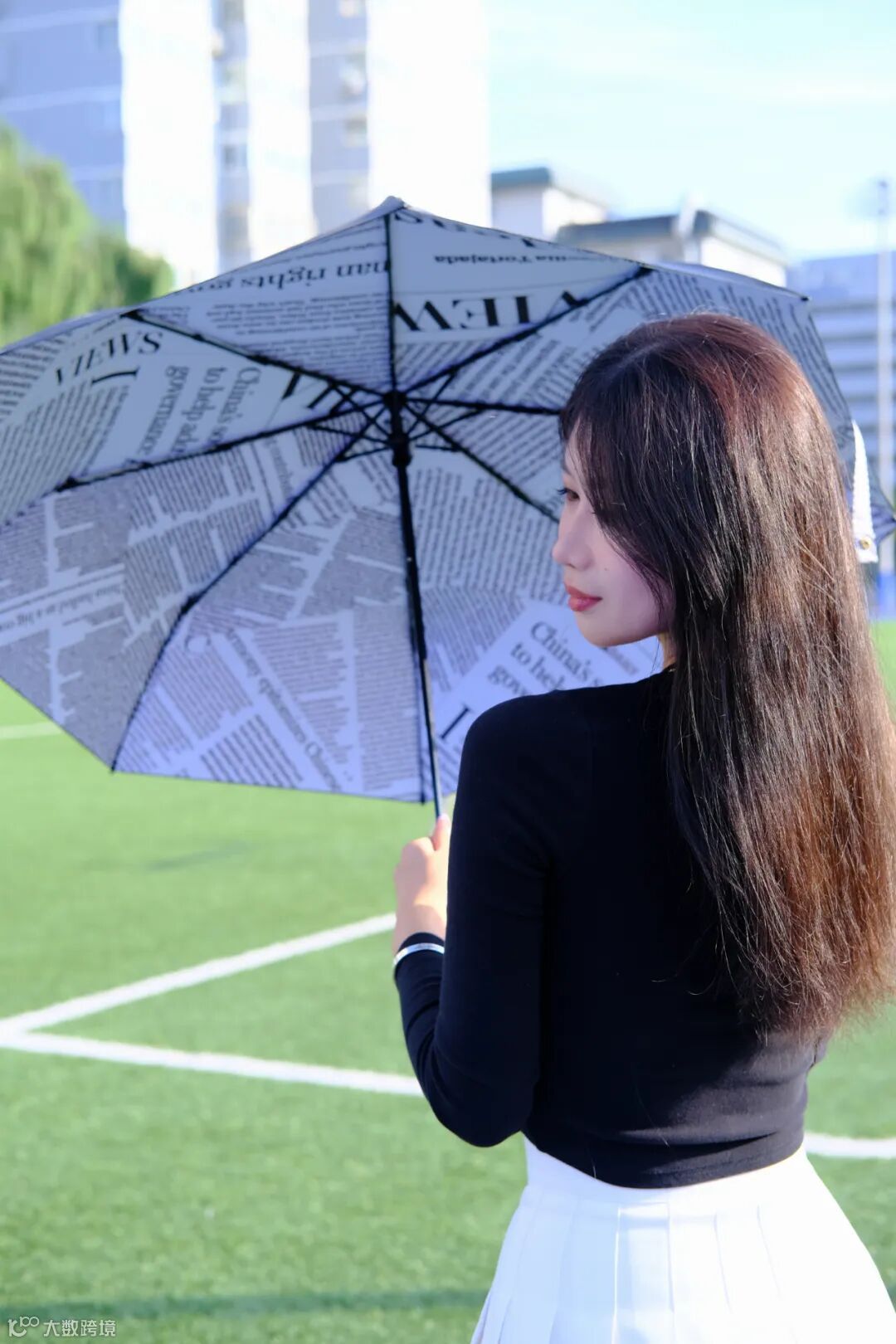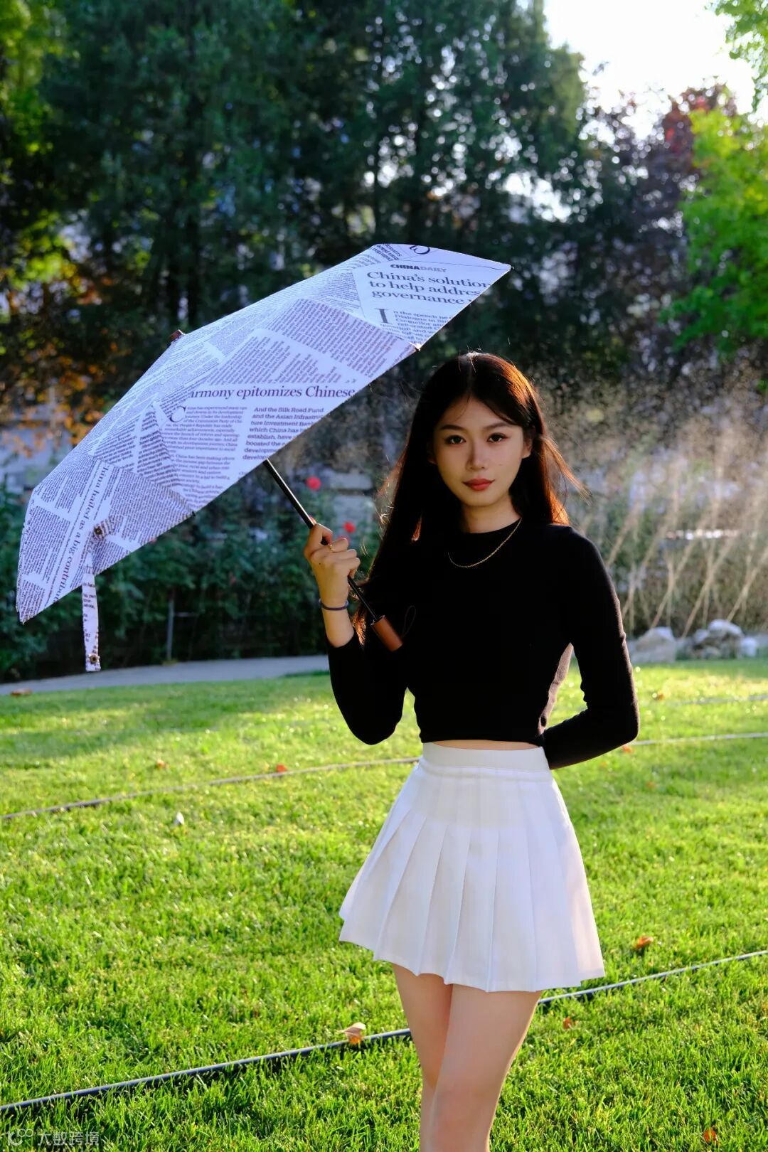 China Daily版面晴雨伞外观设计同样出彩,一面用报纸版面拼接而成,一面选用黑胶布防水材质,经典黑白配色,简约而不失时尚。