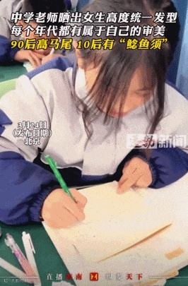 Recently, a middle school teacher posted a video of students in his class. The camera showed everyone in their school uniforms doing exercises. However, the girls almost invariably had "bangs", otherwise known as a fringe or "catfish whiskers".