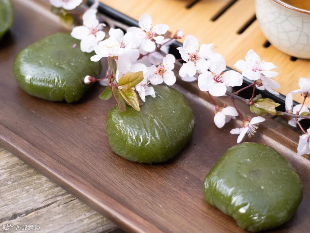 During Qingming, you can taste a delicacy called Qingtuan. This pastry made from glutinous rice and pounded mugwort has a bright-green color, and a soft, sticky and sweet texture. It is also called aituan or Qingming tuanzi.