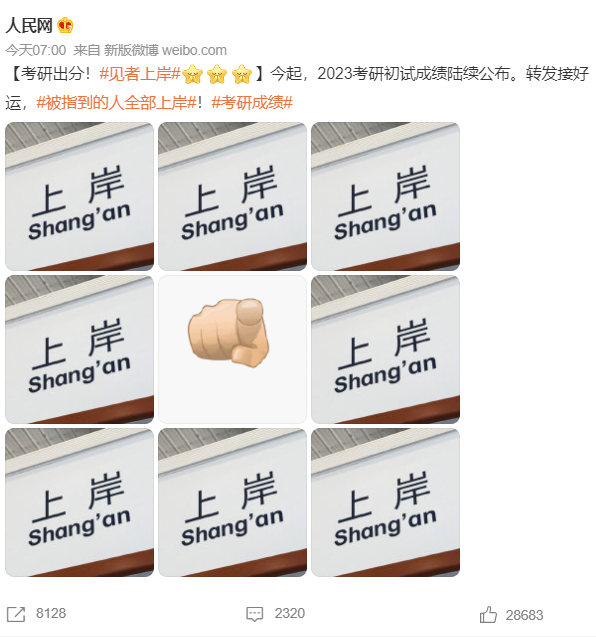 "Shang'an", or "landing ashore", a buzzword meaning "passing an exam or landing a job", has been on people's lips as the 2024 national postgraduate entrance exam started releasing results to its applicants on Monday.