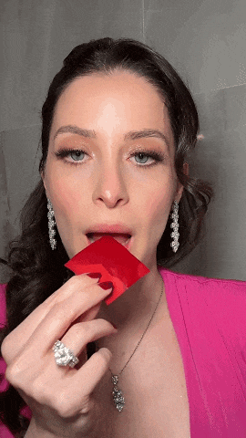 视频里她将口红纸沾水后“抿嘴唇”试色,接着感叹:“颜色也太美了,还不易脱妆!”