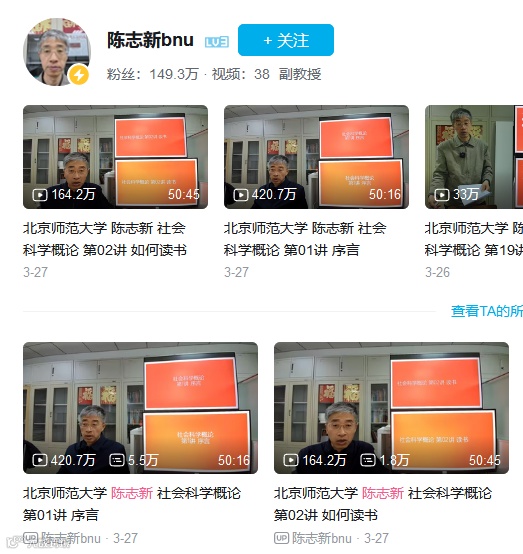 An associate professor at Beijing Normal University has unexpectedly gone viral on the popular Chinese video platform Bilibili. The certified account has now amassed nearly 1.5 million followers in a matter of days after uploading the "Introduction to Social Sciences" course.