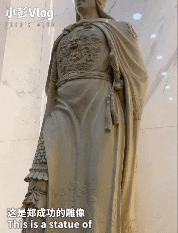 台湾厅里的两尊雕像吸引了小彭的注意,其中一尊是民族英雄郑成功。1662年,他将荷兰殖民者从台湾驱逐出去,使台湾重回祖国怀抱。