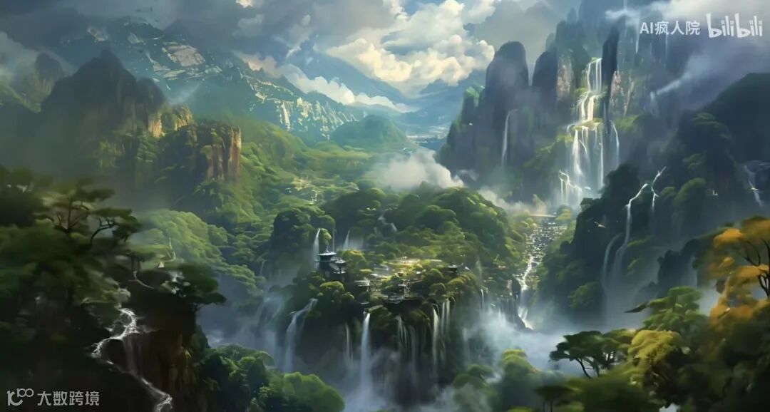 这段视频长度约为3分56秒,以《西游记》原著第一集为蓝本,通过AI技术将石猴降生到拜师学艺的故事呈现在观众面前。郁郁葱葱的花果山、恢弘磅礴的仙宫、极具烟火气的人间城池......AI的描绘不亚于一些动漫大片。