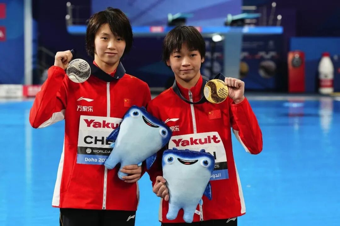 The 16-year-old Chinese star edged teammate Chen Yuxi, totaling 436.25 points over five dives. Chen, the two-time reigning world champion, settled for a silver this time with 427.80.
