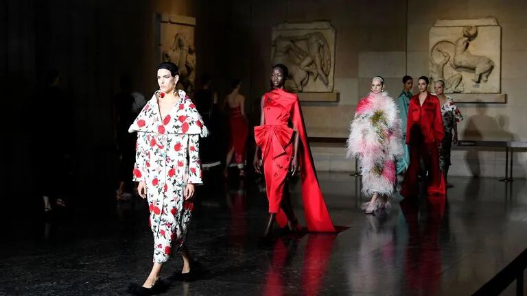 Designer Erdem Moralioglu chose the impressive setting of the Athens Parthenon sculptures showroom at the British Museum to present the autumn winter 2024 collection of his eponymous brand Erdem, inspired by Greek singer Maria Callas and her interpretation of the opera Medea in 1953.