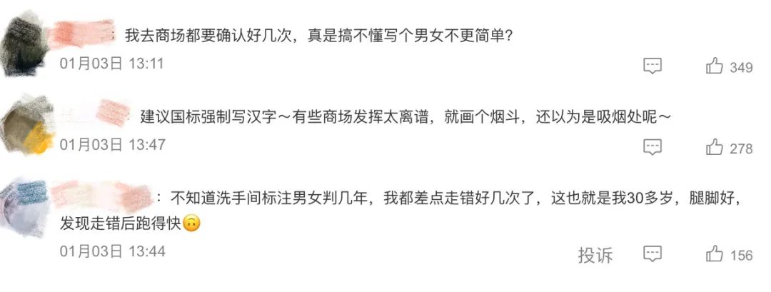 “用‘男’、‘女’两个字就这么难吗?”“有些设计已经偏离初衷了,标识是给人方便的,不是给人添堵的。”不少网友如此评价。