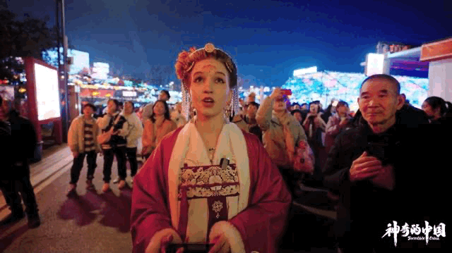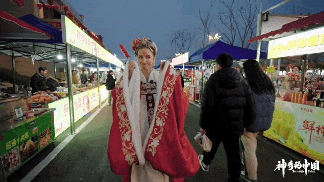 体验了集市的热闹,@神奇探索局 也帮梅丽莎实现了装扮成唐朝公主逛灯会的愿望。看着镜子中的自己,她感到很幸福:“真没想到像我这样的欧洲面孔,也能够成为一个中国的公主啊。”