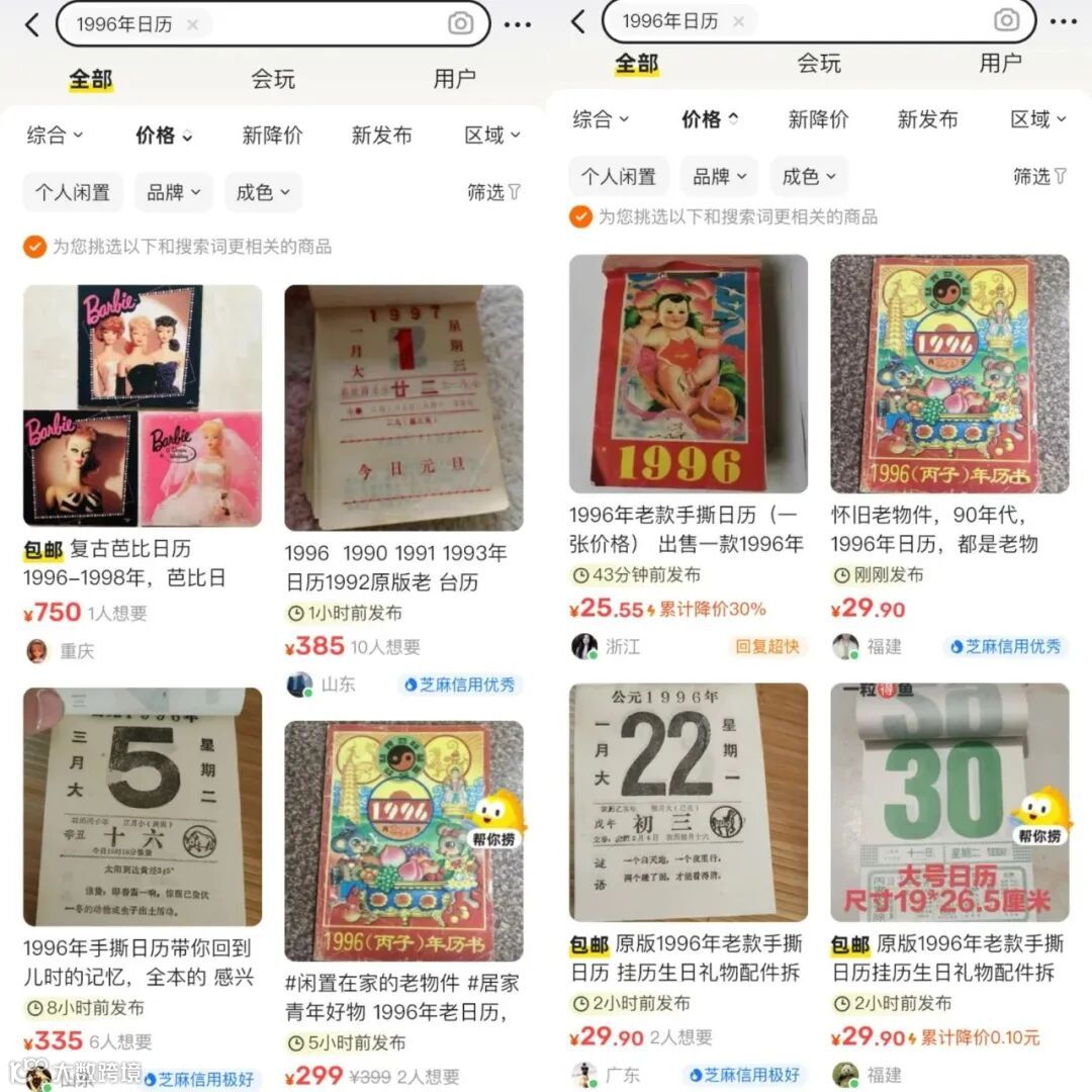 On certain online platforms, the keywords "1996 calendar" have surged to the top of the search rankings, resulting in a significant increase in the prices of these special vintage calendars.