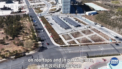 鄂尔多斯的绿色智能生活远不止于此。康巴什市区中的停车场内,学校的屋顶上,散落着总装机容量3兆瓦的分布式光伏系统。与沙漠中的“蓝海”相呼应,散落在城区里的蓝色,让鄂尔多斯更有效地追逐着阳光,削减的二氧化碳排放量达到3000吨。板下的充电桩,也给追求绿色生活方式的人们增添了一份便利。