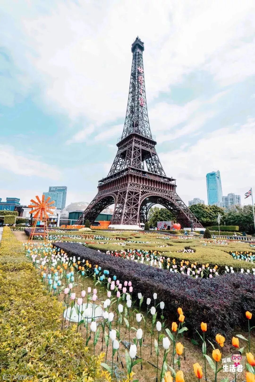 进入园区,没人不会被这座“埃菲尔铁塔”牢牢锁定了目光,在郁金香花海前,瞬间有种法国+荷兰合体的感觉~