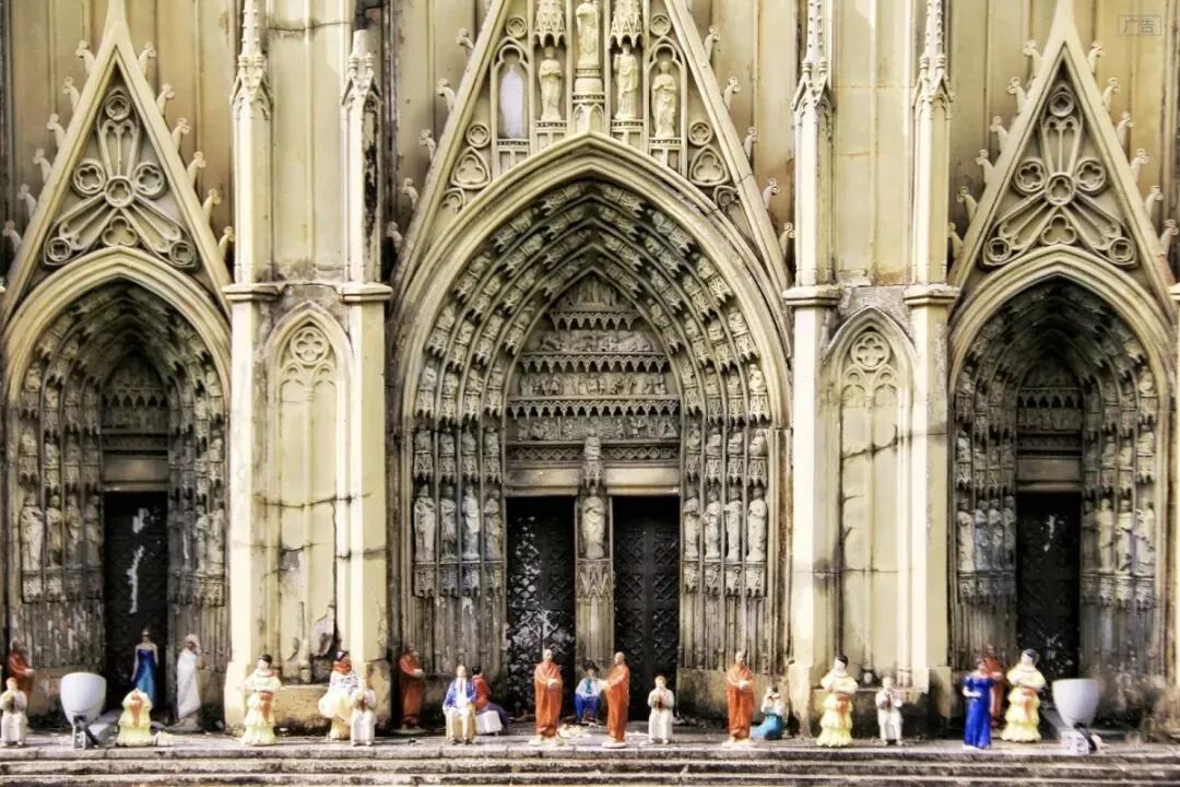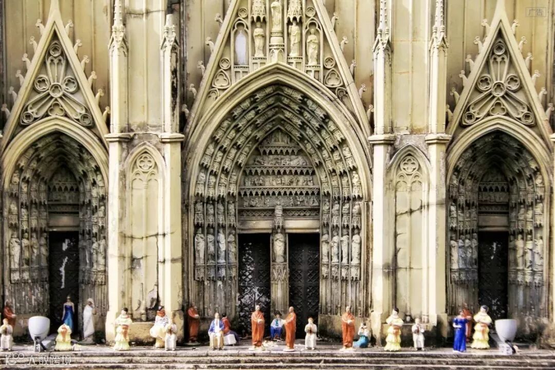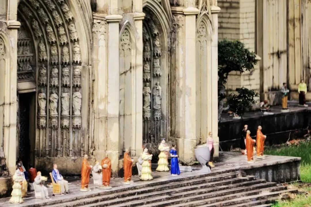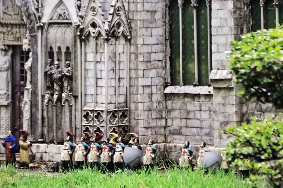 正门前的草地上还有许多身份各异的人物模型,守卫军,僧侣,还有各界名流,还原着中世纪的景象。