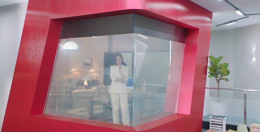 就像本剧夸张到极致的电视台布局:男女主的人马各坐办公室的一边,以会议圆桌为斗争中心,似乎偏离真正的职场,朝着浮夸的方向一去不回。