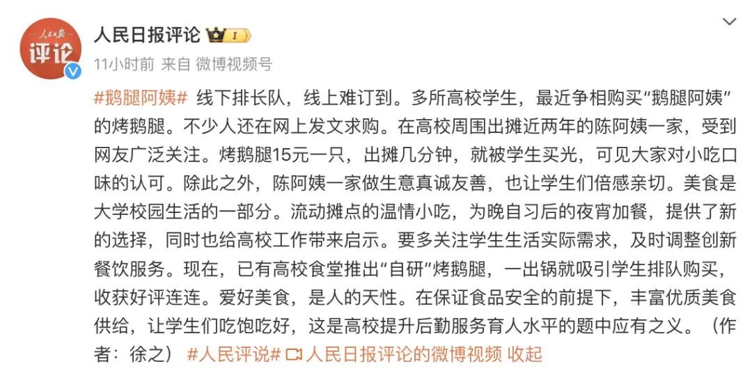 @人民日报评论 发文称,流动摊点的温情小吃,为晚自习后的夜宵加餐,提供了新的选择,同时也给高校工作带来启示:要多关注学生生活实际需求,及时调整创新餐饮服务。