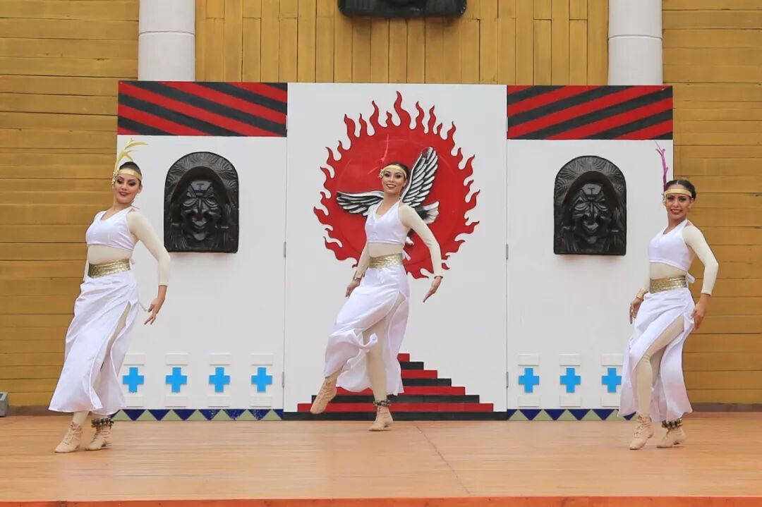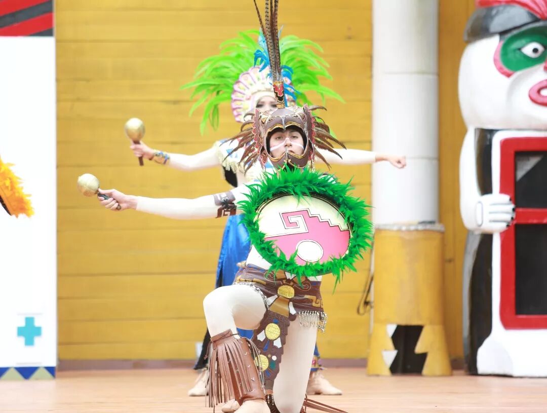 以乐配合,通过鼓、铃铛等的轻重缓急的演绎