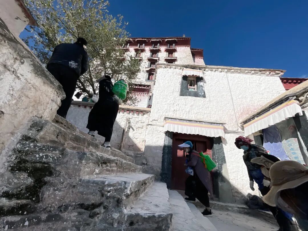 According to locals, in the past, painting the Potala Palace would take about a month. However, with the progress of technology and rapid social development, the work is usually completed within a week.