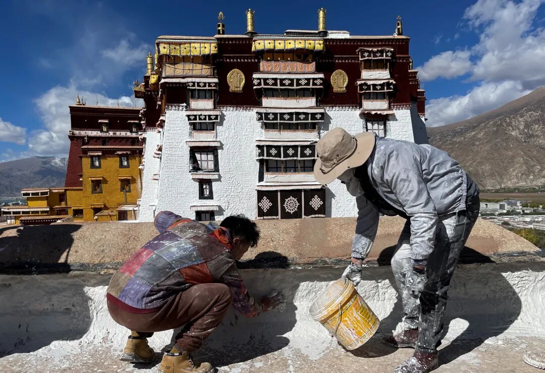 The Potala Palace, a UNESCO world heritage site, began its annual whitewash painting project in mid-October, and the work was completed in about one week, according to the palace's management office.
