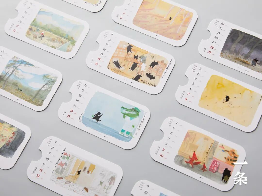 在中国传统节日以及一些重要的国际节假日那一天,日历的插画会被特别设计成藏书票,沿着虚线剪开就可以贴在任何地方。