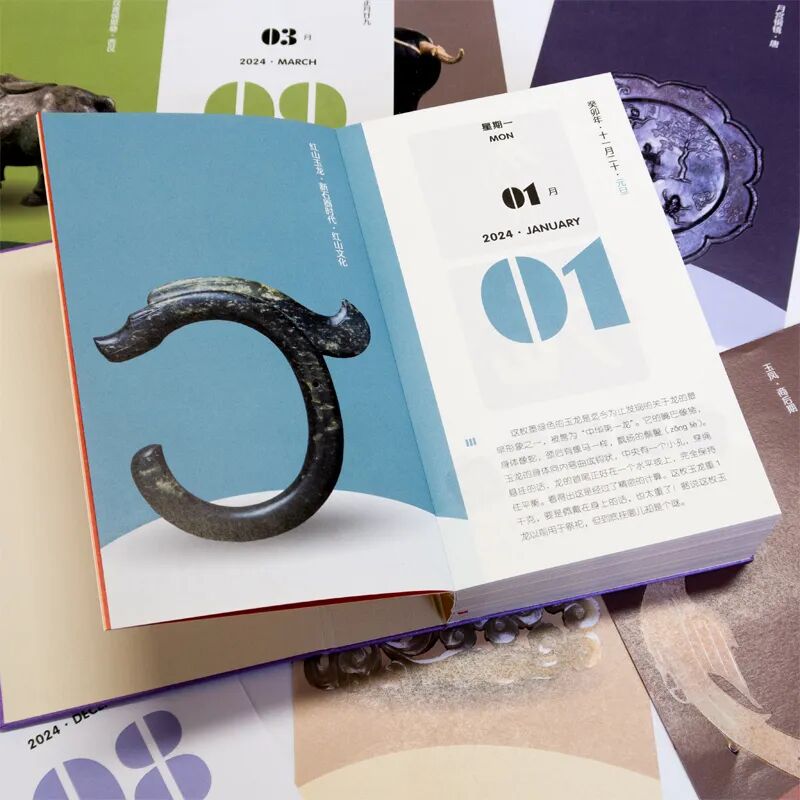 日历的装帧设计由“中国最美的书”获奖设计师操刀,将传统气韵和现代风格融合,吉庆配色,紫气东来,红火龙年!