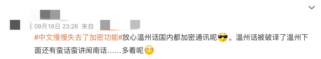 面对“加密功能”的失效,有网友表示“没事,可以讲方言(dialect)”,但很快便遭到反驳: