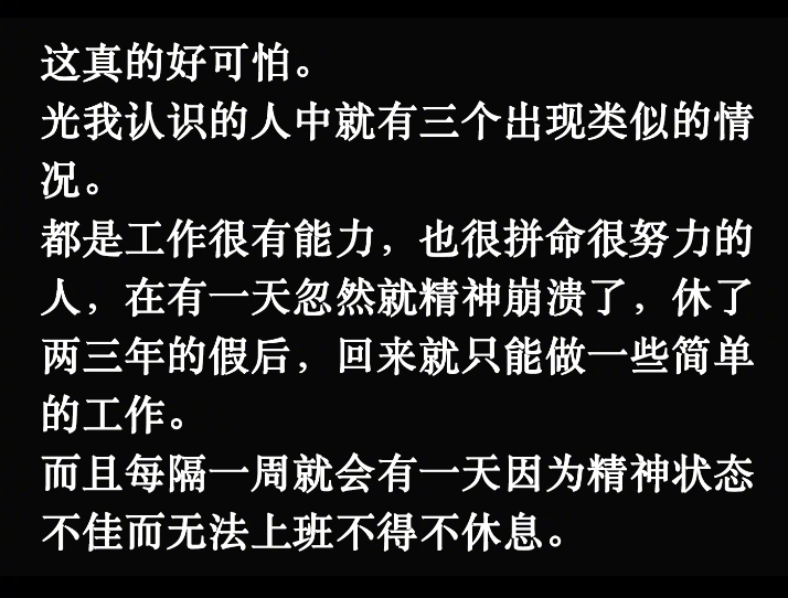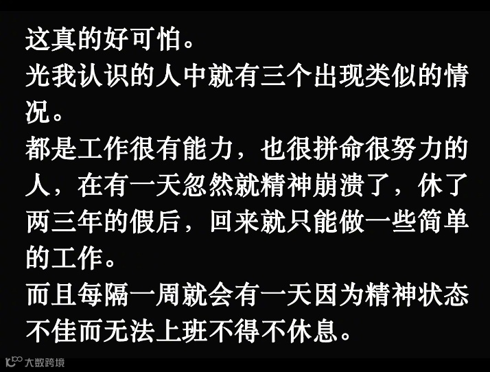 它描述了一种特殊现象:“周围一些工作很有能力,也很拼命努力的人,在经历‘间隔年(Gap year)’后,再次回到职场就只能做一些简单的工作,而且每隔一周就会有一天不得不因为精神状态不佳而无法上班休息”。