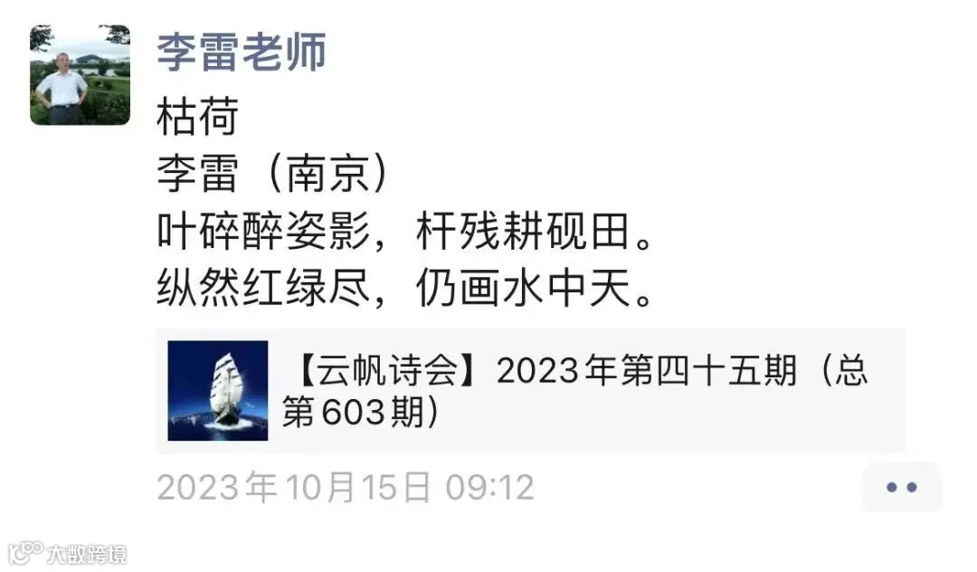 在李雷老师的朋友圈里,他还经常用数学和诗词分享自己的生活,形容季节的变化,描绘身边的风景……
