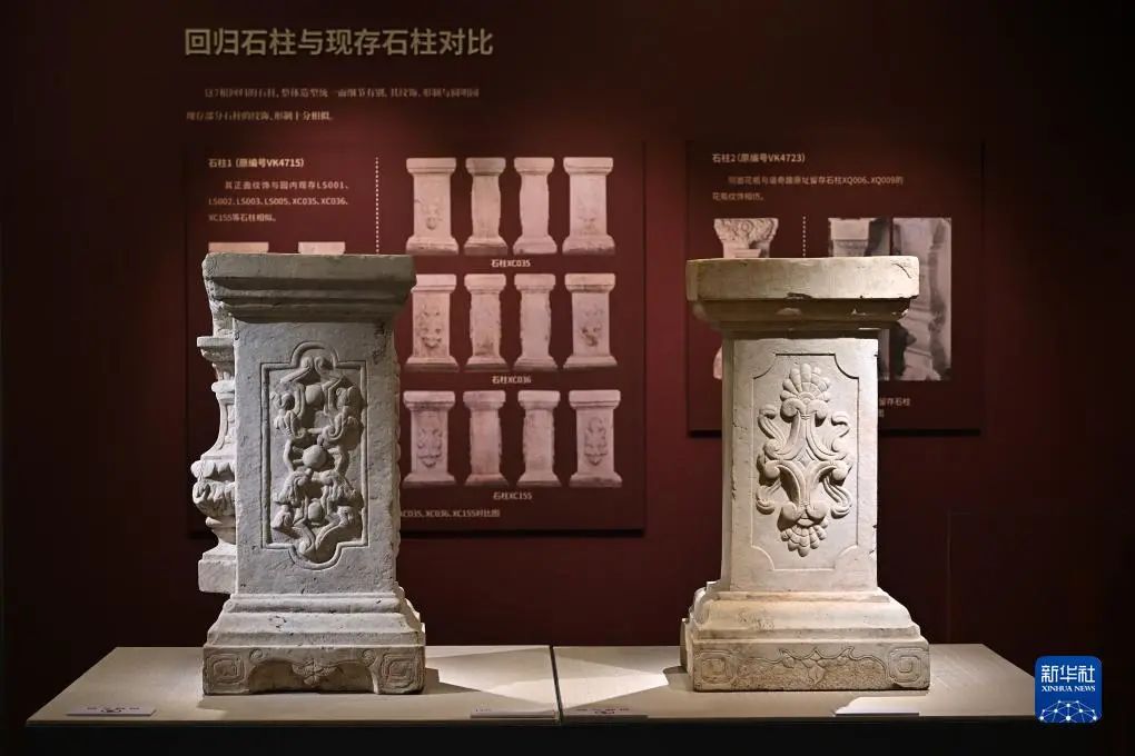 The columns were originally from the Western Mansion (Xiyang Lou) area of Yuanmingyuan. A long-term exhibition displaying these relics, together with related old pictures, has opened at the Zhengjue Temple of Yuanmingyuan Ruins Park.