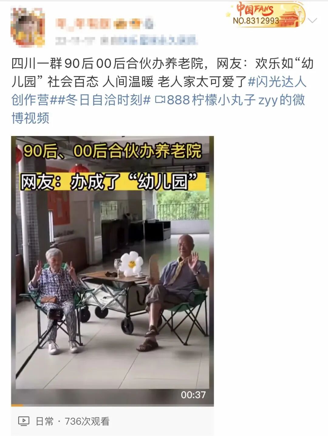 四川雅安也有一家类似的养老院,主打“养老无龄化、状态自定义”的经营理念。而开办这一机构的正是几名“90后”和“00后”。这些年轻人会带着老人们做各种新鲜的尝试,比如拍时尚大片、办艺术展览、唱卡拉OK、露营、变装……