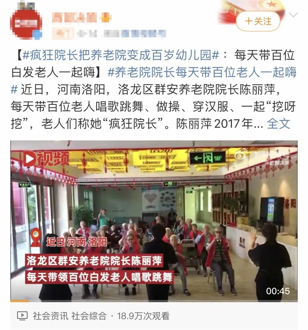 在河南洛阳,陈丽萍常组织养老院集体跳舞、做手指操、租汉服外出拍照、跟着火爆全网的“挖呀挖呀挖”学做操,场面堪比幼儿园。玩high了的老人们亲切地称他为“疯狂院长”。