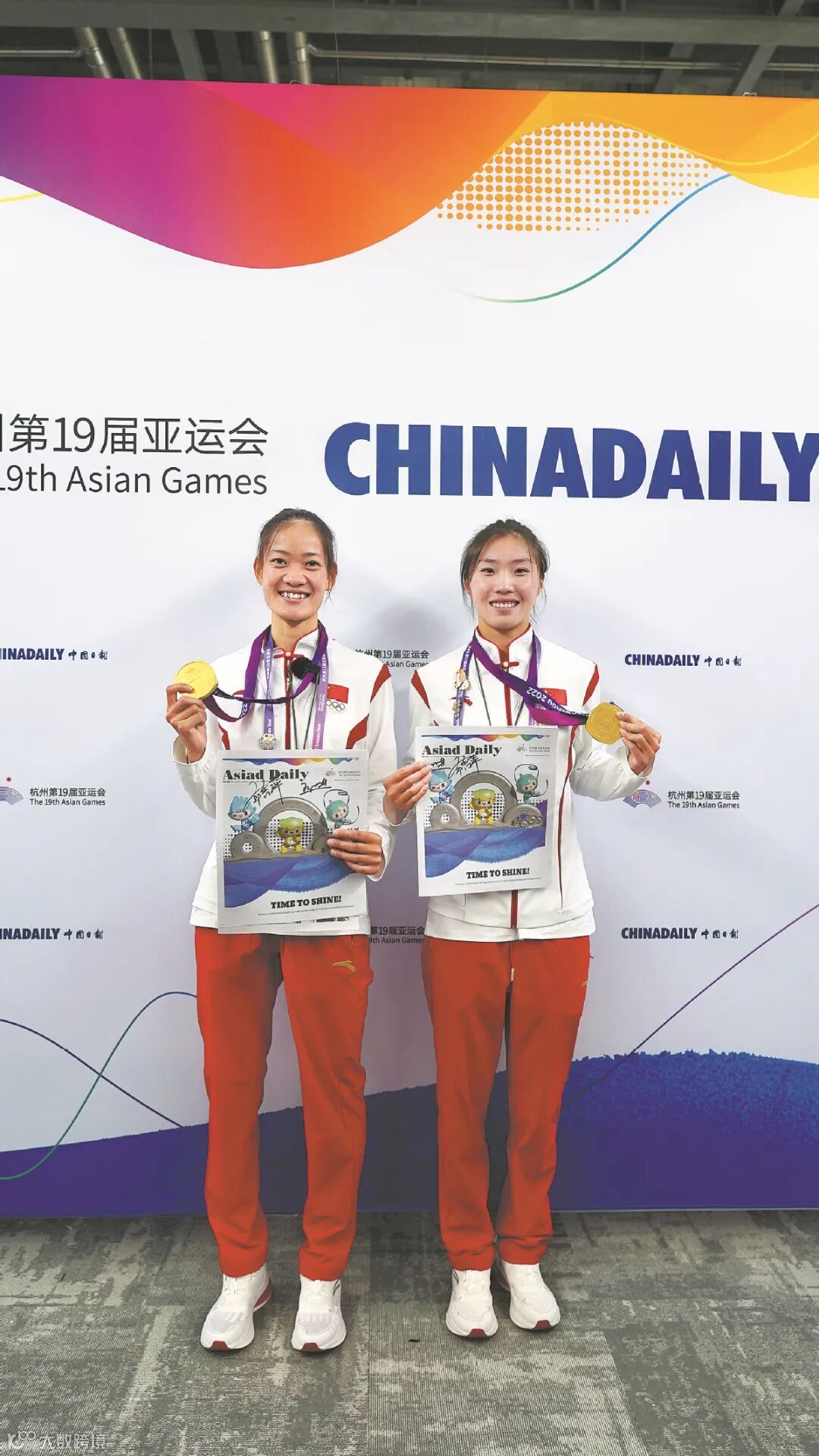 邹佳琪说,这是第一次参加亚运会,拿到首金非常激动。比赛现场的加油声很大,“离终点还有500米时就远远听到了”。