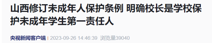 To enhance the protection of minors' legal rights, Shanxi province has revised regulations effective from January 1, 2024. These regulations cover topics such as minors' psychological education and anti-bullying measures, with school principals designated as their primary protectors.