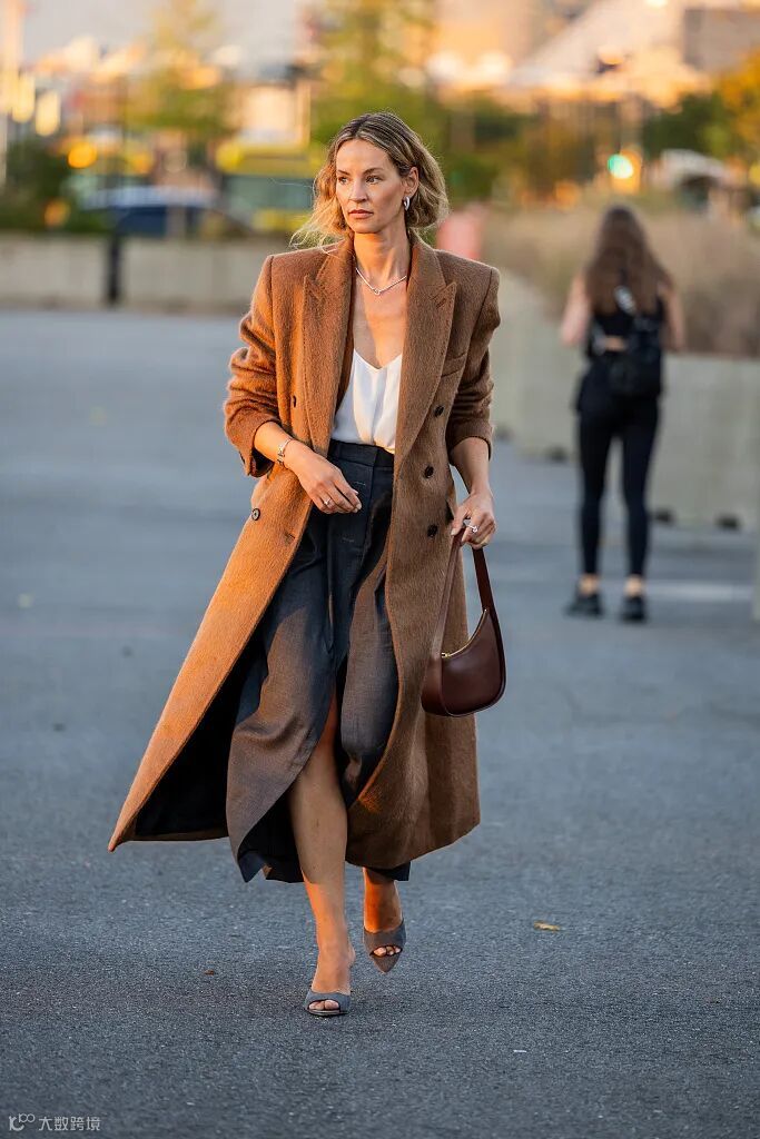 在被时尚圈吸收后,“美拉德”就变成了棕色系穿搭,如大面积纯棕色系,或者加上橘红色系的点睛单品,还有更复杂的跳色。