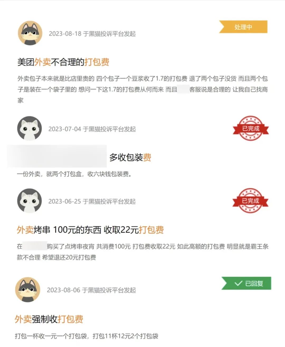 随餐可乐要收包装费、奶茶配料分装收取包装费、烧烤烤串每一串都收包装费,勾选餐食口味也要收包装费……