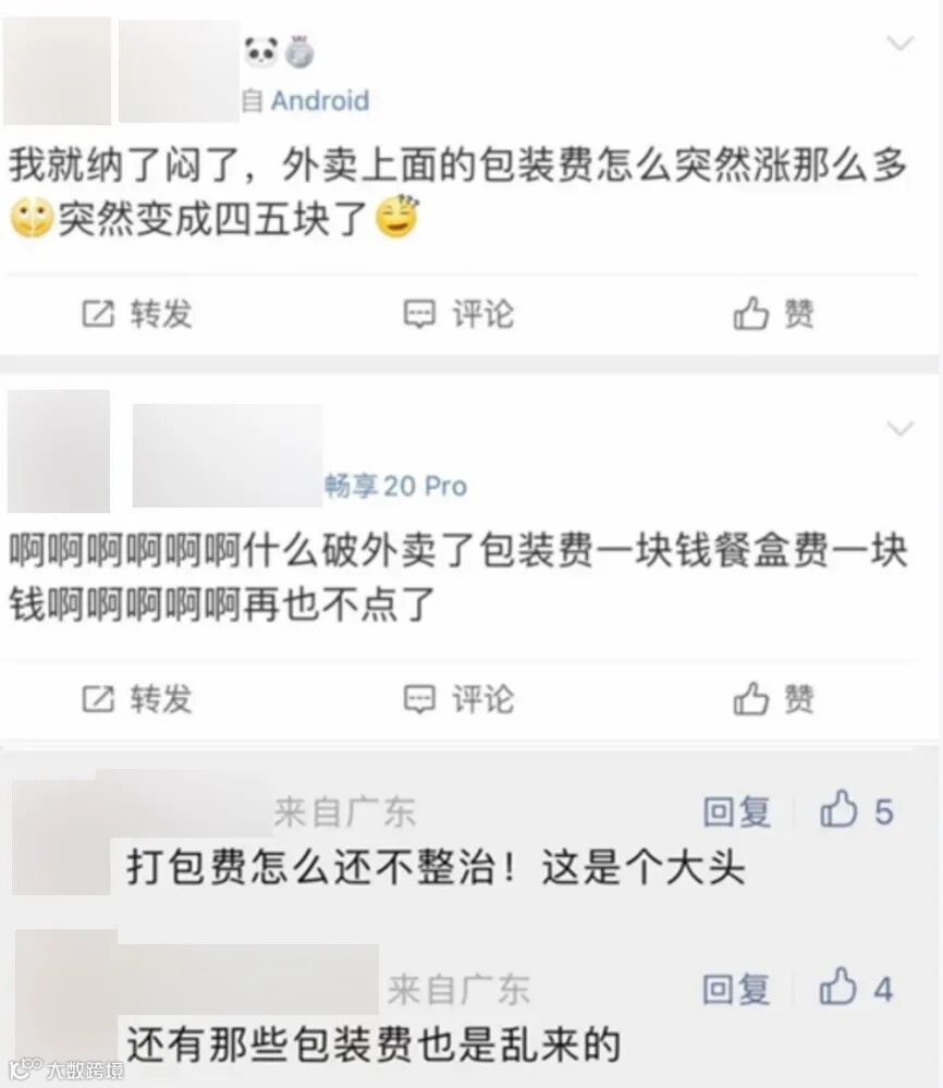 在各大社交平台上,网友们纷纷就自己遇到的外卖打包费套路行为,讲述了自己的经历。外卖包装收费标准不一、过度收费等“包装刺客”现象频受网友吐槽。