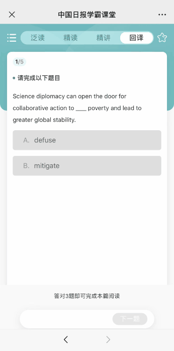 练听力、背单词、记短语、分析句子结构、打磨翻译、跟读练习发音、模仿写作……英语学习涉及的每一个环节,你都可以在学习China Daily精读计划课程时得到练习。