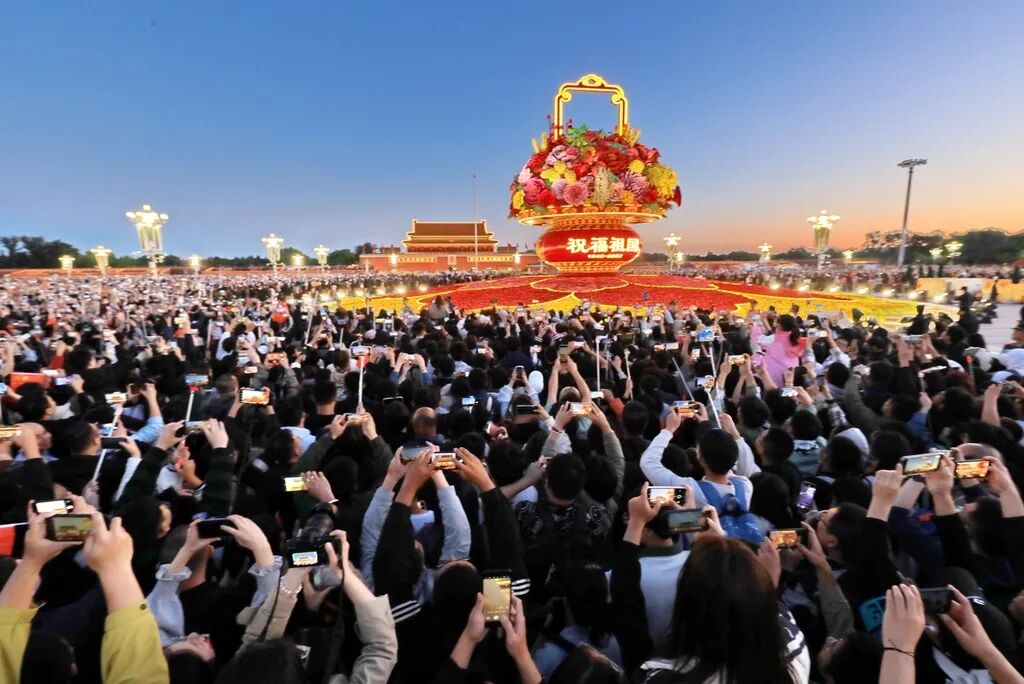 2023年10月1日,北京天安门广场30.2万市民游客国庆节当日观看升国旗仪式。图源:东方IC
